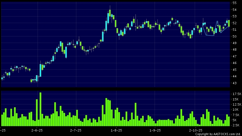Disclaimer:The information, financial market data, quotes, charts, statistics and / or various technical analysis indicators are automatically generated based on the analyses and interpretations of publicly available information and should be used as references only at your own discretion. Such automatically generated content does not reflect the views or opinions of AASTOCKS.com Limited nor does AASTOCKS.com Limited make any guarantees to their accuracy, completeness, timeliness or correctness. You are advised to consult independent professional advice to verify pricing information or to obtain more detailed market information. Any uses of information or trades executed following the said automatically generated content are taken at your own risk for your own account.