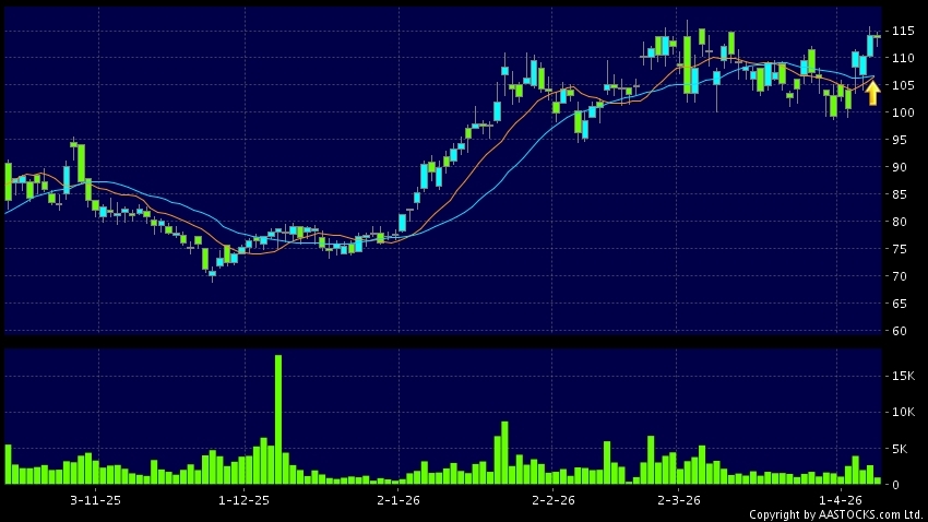 黄金交叉是一个利好讯号,指股价的短期移动平均线升穿长期移动平均线,例如50天线升穿250天线,在图表上构成交叉的形状。股价通常会上升形成一个上升趋势,技术走势向好。(港股报价延迟最少十五分钟。沽空资料截至 2026-04-17 16:25。)