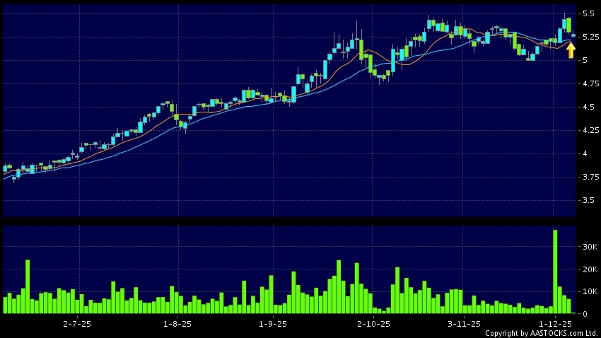 免責聲明:以上金融市場數據、報價、圖表 及/或各種技術分析指標乃根據公開資料分析和演釋自動生成的,僅作參考使用。此類自動生成的內容並不代表AASTOCKS.com Limited的立場。AASTOCKS.com Limited並不保證其準確性、完整性、實時性或者正確性。閣下應諮詢獨立專業意見,以核實定價資料或獲取更詳細的市場信息及須為所有跟隨此類自動生成的內容執行的交易或使用該內容負責。
